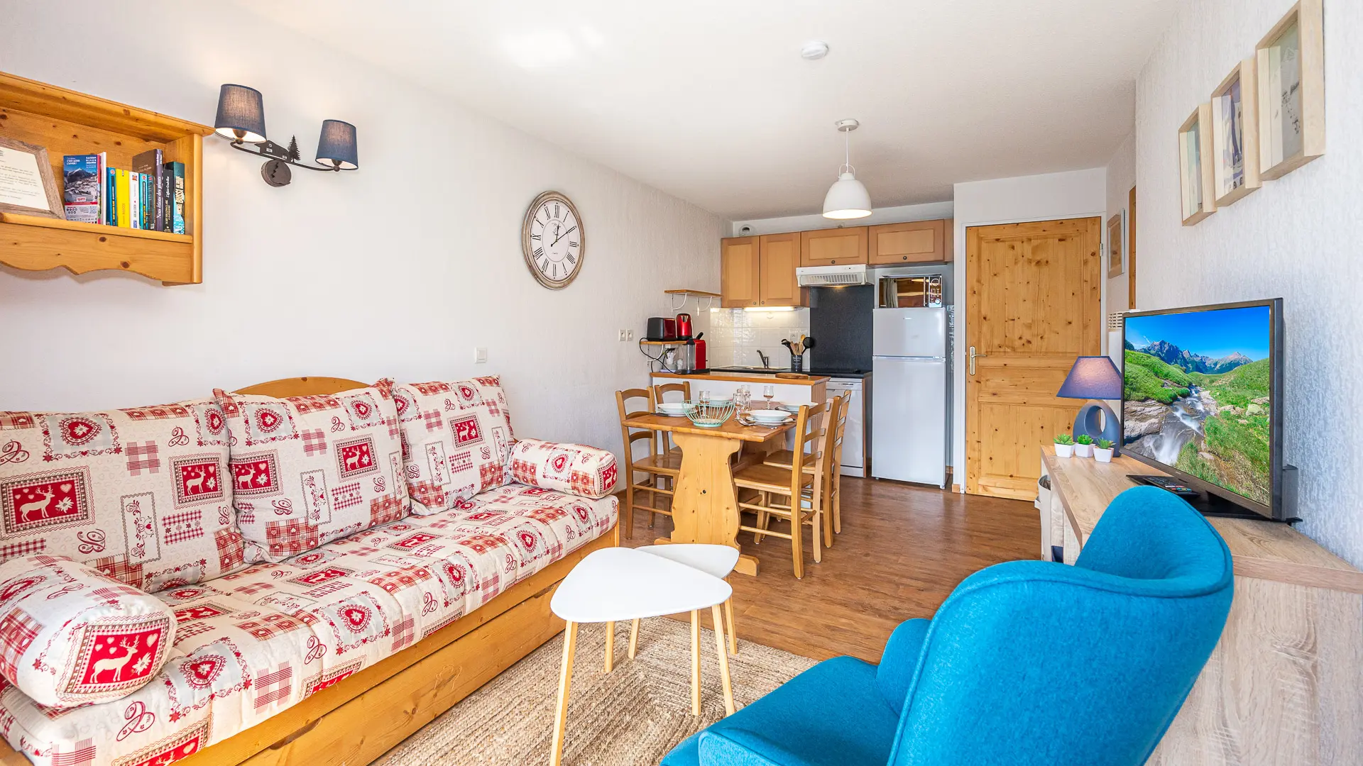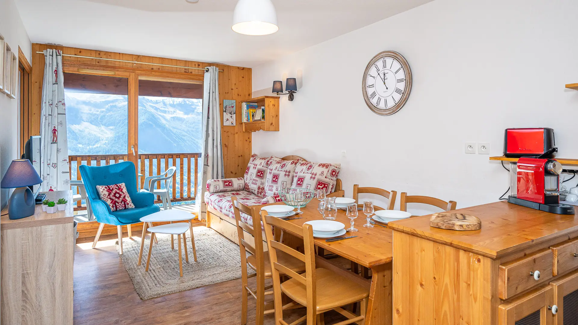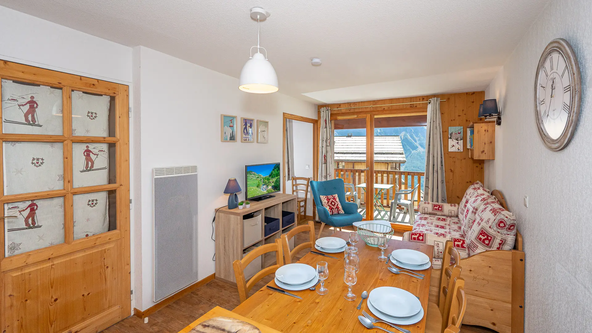 Appartement de 36m2 pour 4 personnes, disponible été comme hiver, au pied des pistes et à 150m du complexe de loisirs. Vous bénéficierez d'une vue imprenable avec son balcon orienté sud-est sur les sommets des écrins, pendant vos déjeuners et apéritifs.
