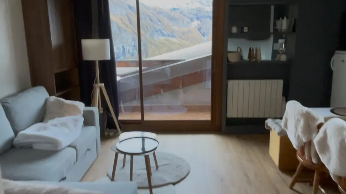 Vous disposez d’un petit balcon sans vis à vis qui vous permettra de profiter pleinement de la vue sur la montagne ainsi que d'un casier à ski.
