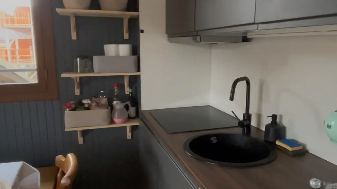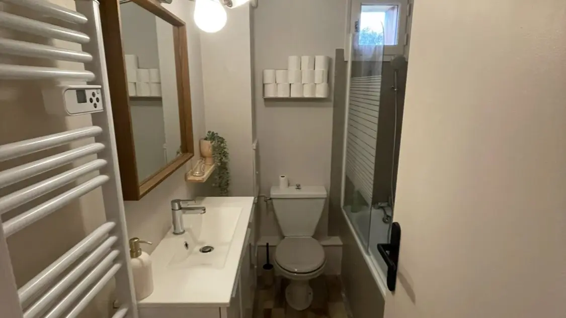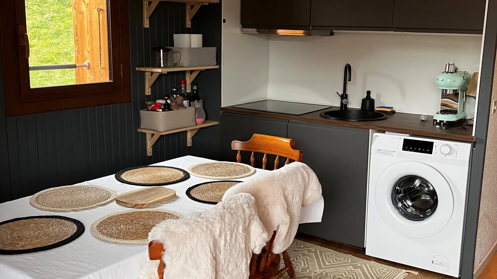 Il a été entièrement rénové et comprend tout le nécessaire pour un séjour confortable : grille pain, machine à café, bouilloire, lave-vaisselle, lave-linge, micro-ondes, et plaque vitrocéramique.