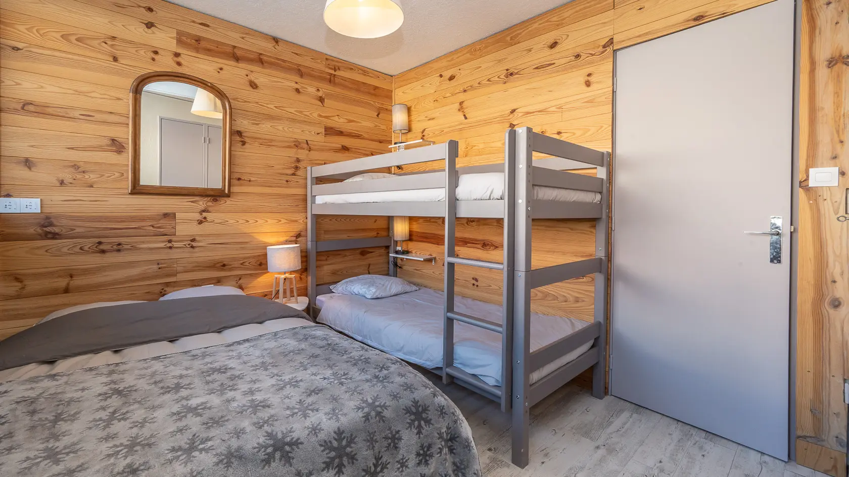 Une chambre avec 4 couchages (lit double en 140) + lits superposés en 90