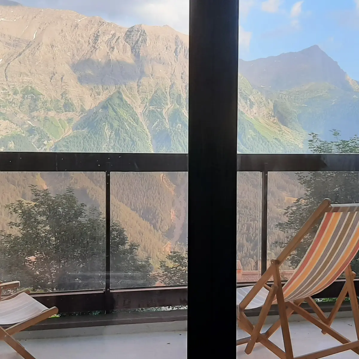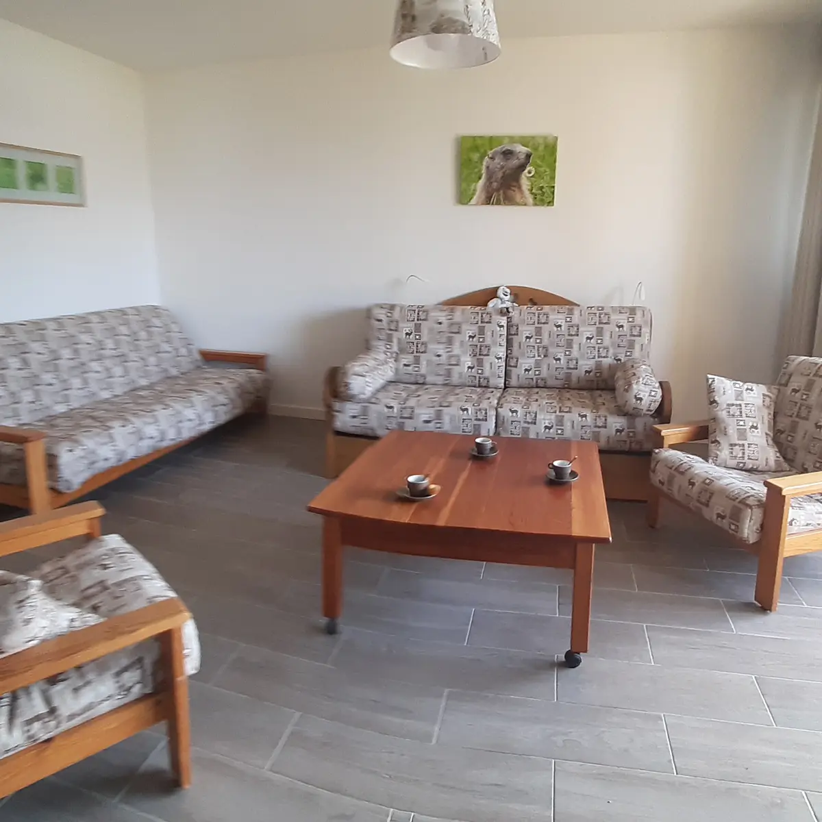 Le salon chambre peut accueillir 4 personnes , avec un canapé convertible "rapido" de 140 x 190, d'un canapé clic clac, d'une télévision , radio réveil et d'un balcon avec une vue sur la montagne et volet roulant électrique.