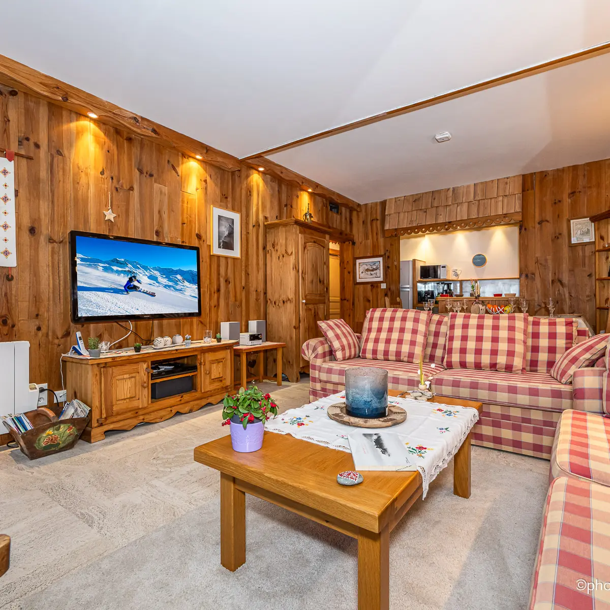 Appartement de 63 m² exposé plein sud à 5 minutes à pied du centre station (palais des sports, départ des pistes) au rez-de-chaussée sans vis à vis