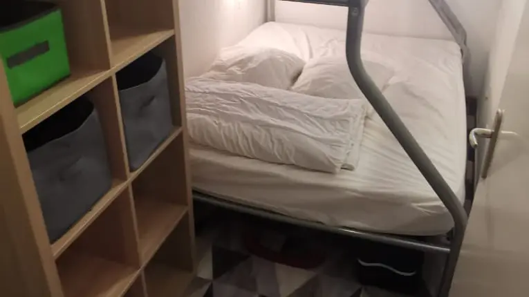 1 chambre/cabine avec lit superposé : un couchage de 90 et un 140 ( 3 couchages) .