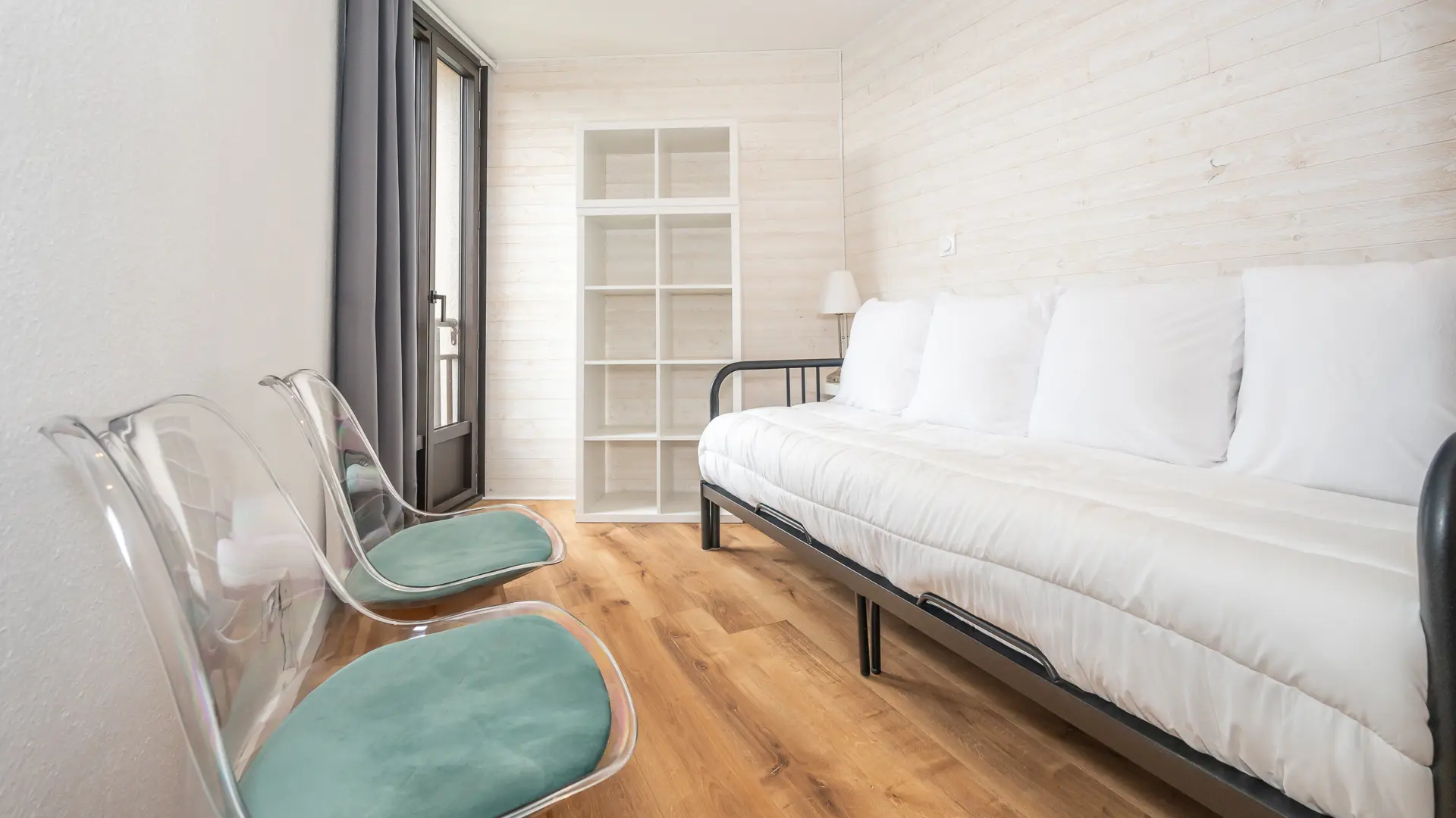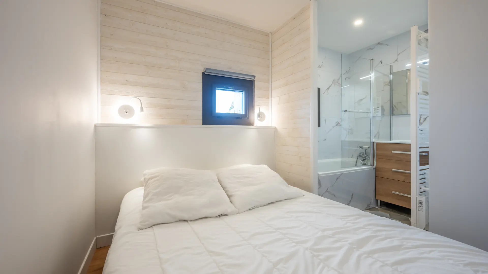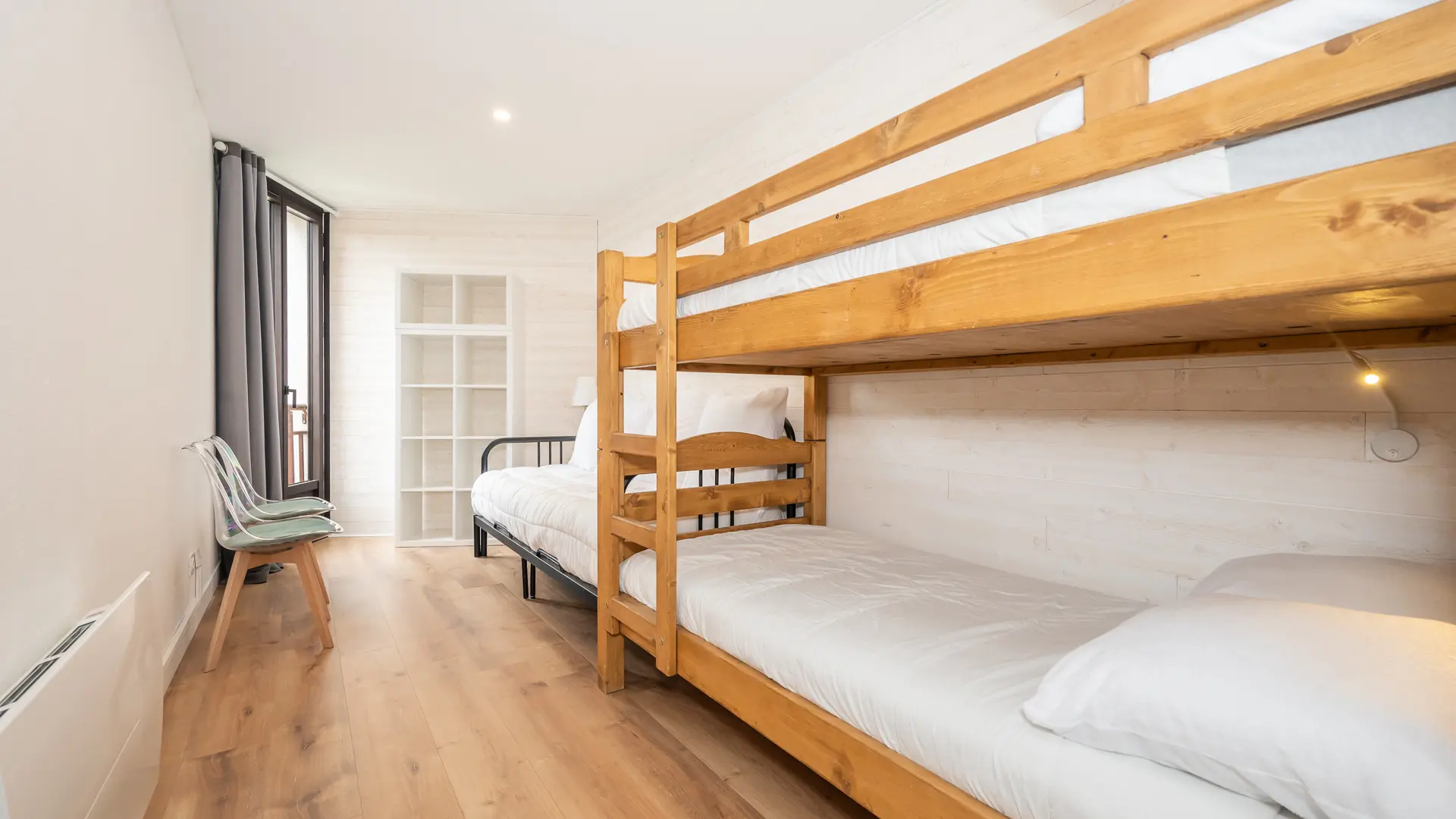1 chambre avec 4 couchages : 1 lit superposés en 90/190 + 1 convertible en 160/200 ( 80/200 fermé).
