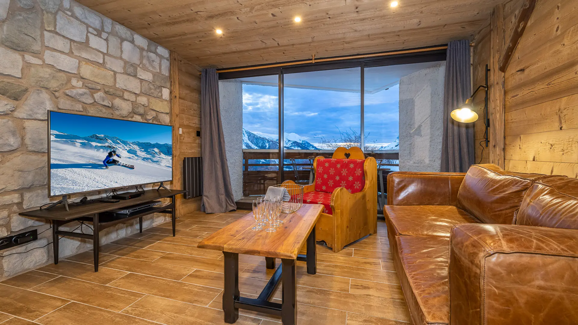 Séjour agréable et lumineux avec sa grande baie-vitrée.