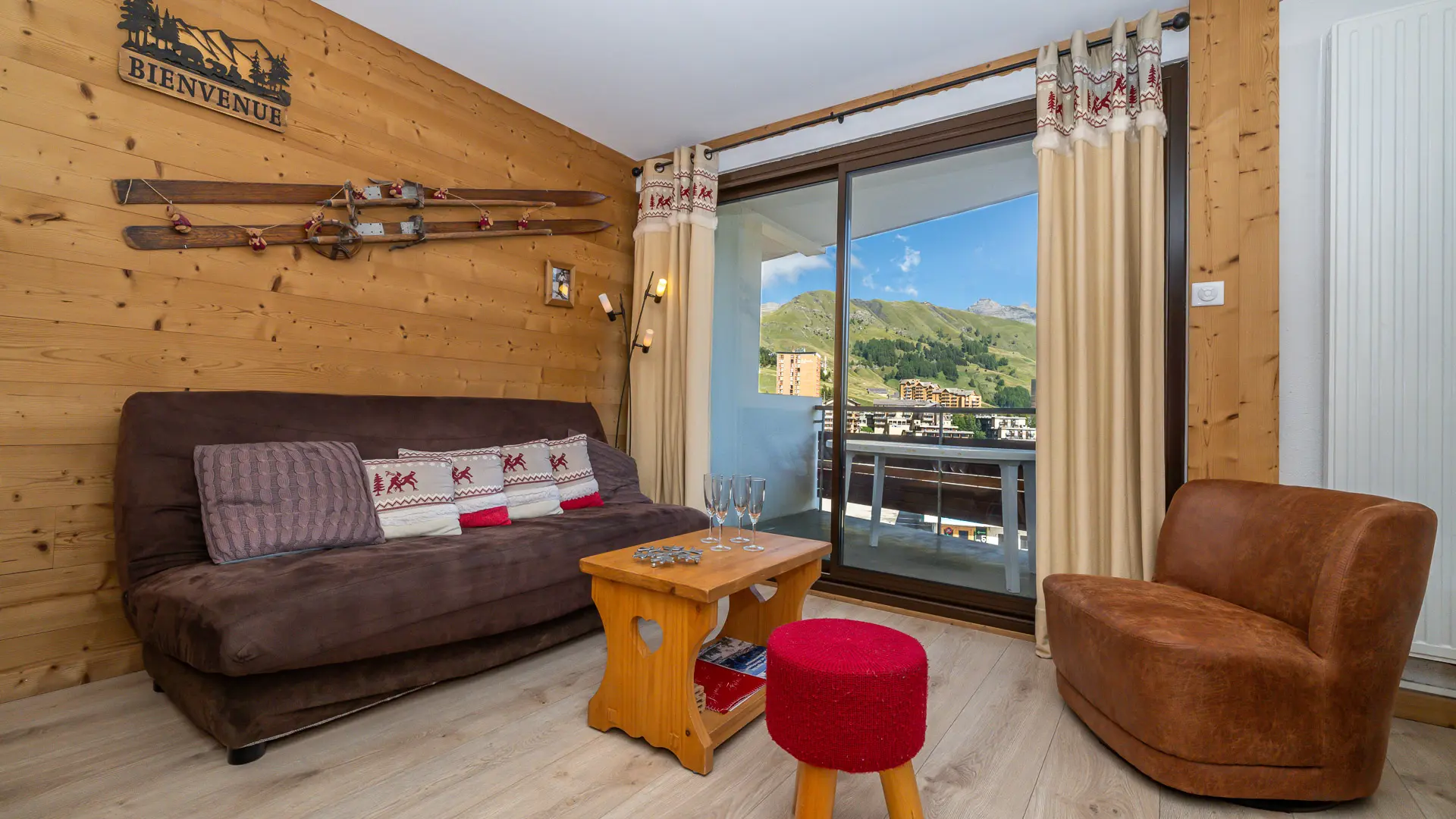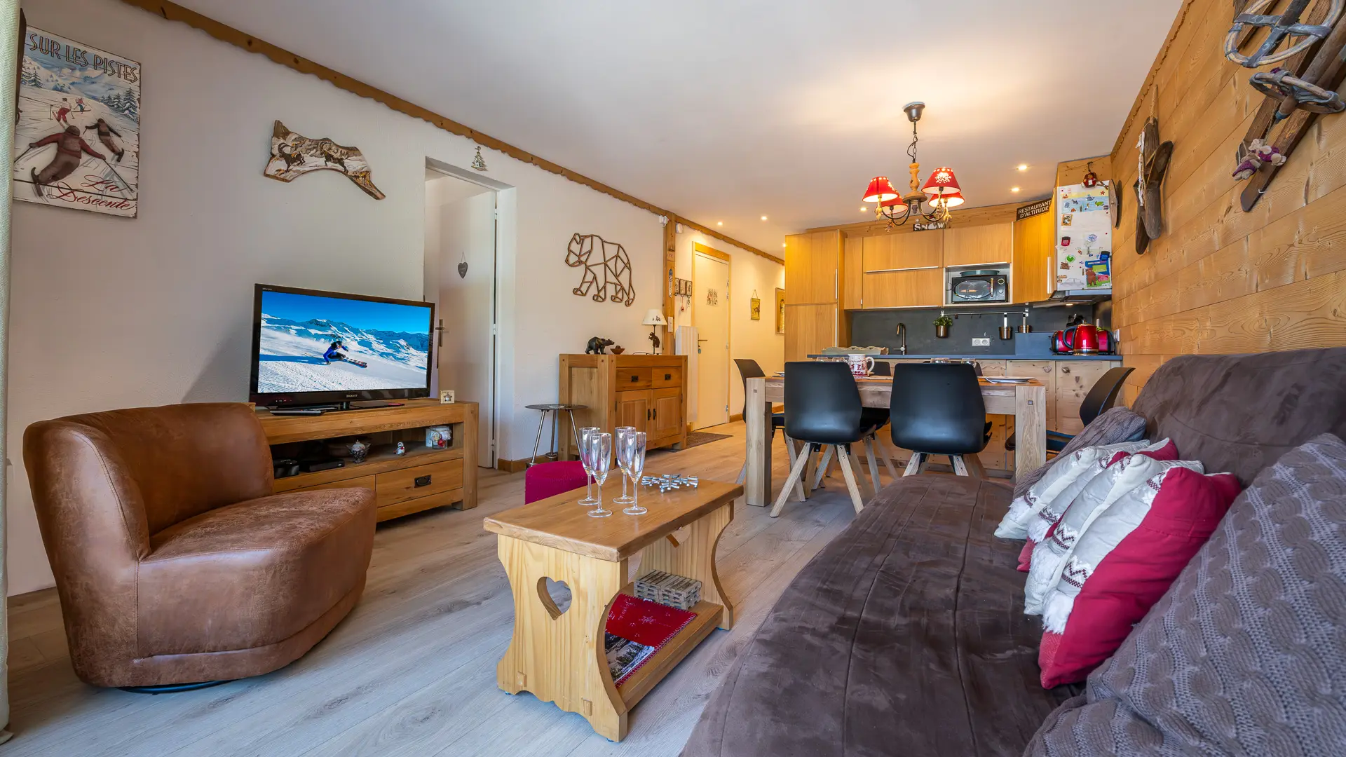 Séjour_ salle à manger : Canapé convertible 2 couchages, fauteuil, table basse, meuble TV,