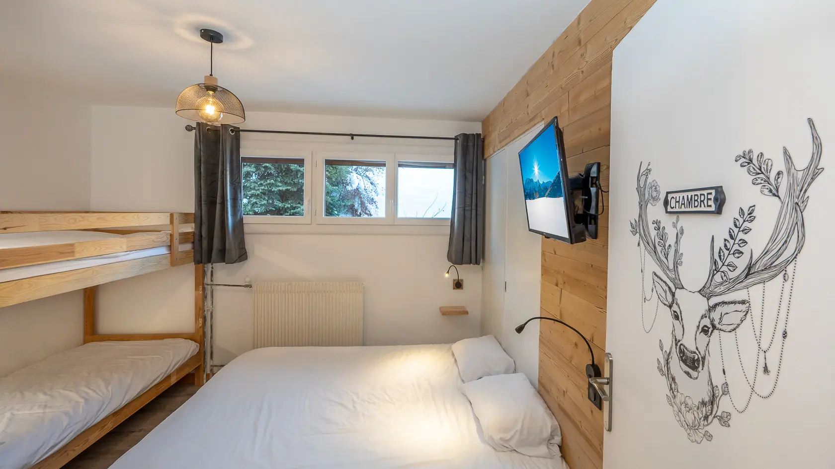 1 chambre - 4 couchages (1 lit double en 160 et 2 lits superposés en 90)