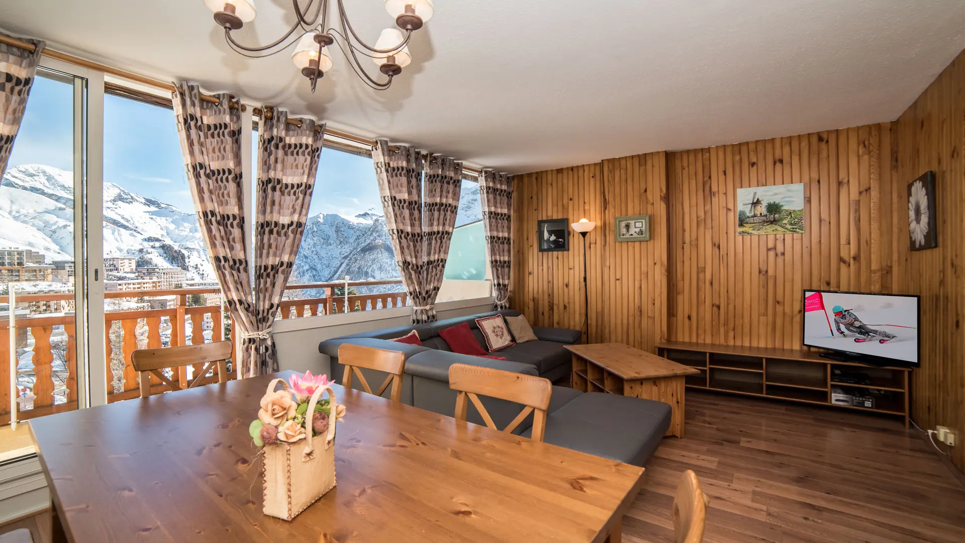 Grand appartement de 65 m² situé en pied de piste centre station, au 3ème et dernier étage.