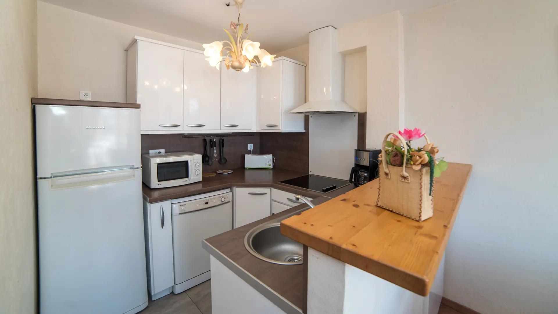 Cuisine : micro-onde, lave-vaisselle, four, plaques vitrocéramiques