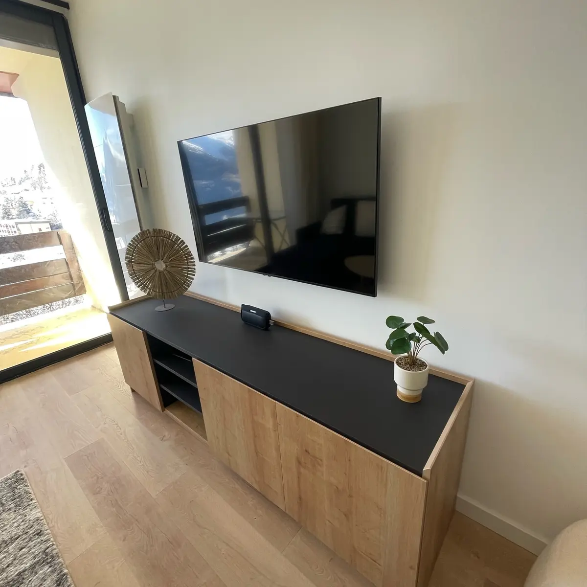 Grand écran plat dans le salon et écran plat dans la chambre principale.