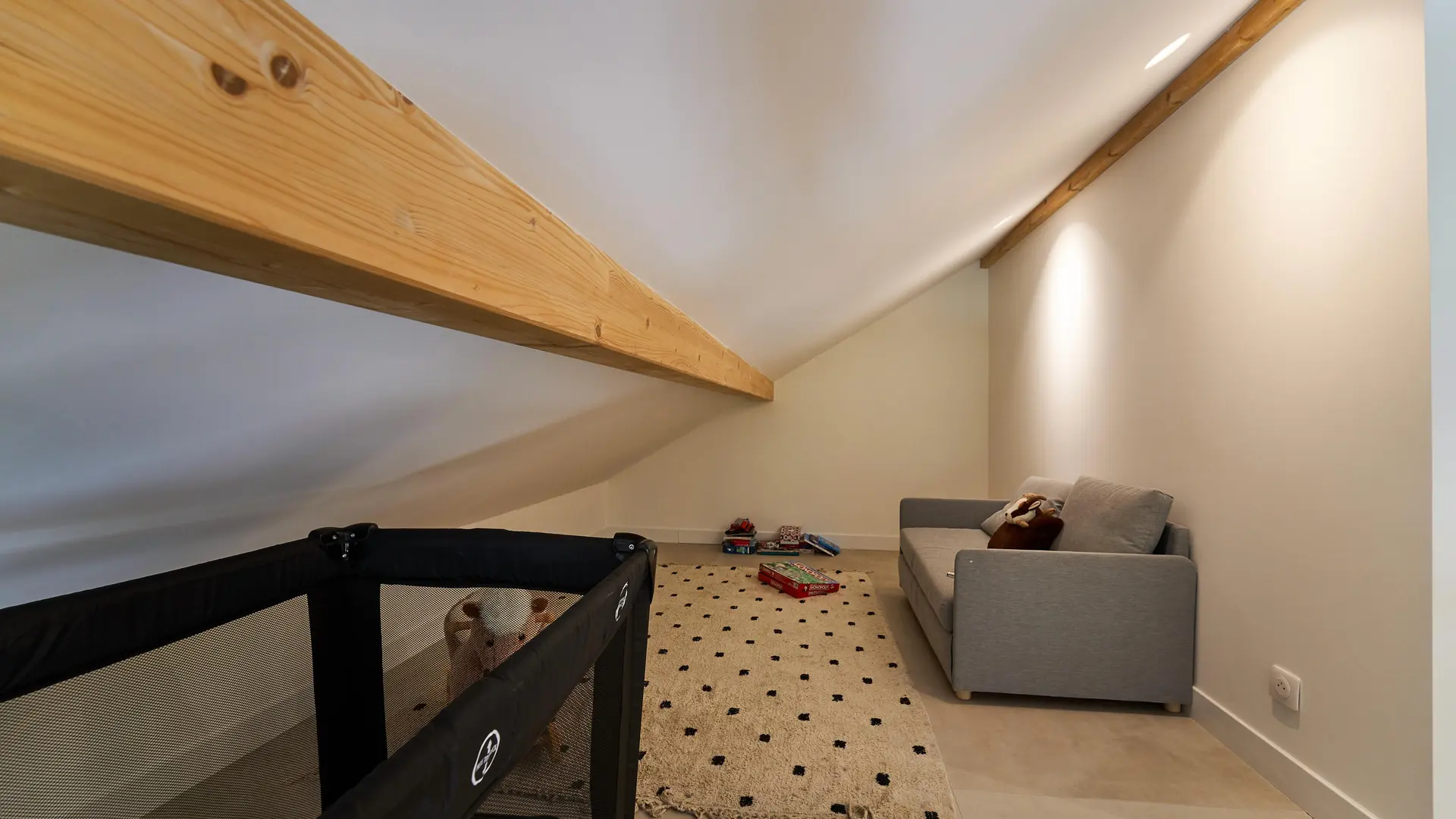 Les 5 chambres, toutes soigneusement aménagées, offrent à chacun son espace de repos et d’intimité. Avec 4 salles de bain modernes, une cuisine ouverte ultra-équipée et une salle de jeux dédiée aux enfants, tout est pensé pour votre confort. En été, on partage un barbecue sur la grande terrasse plein sud. En hiver, on dépose les skis dans le box sécurisé après une belle journée sur les pistes.