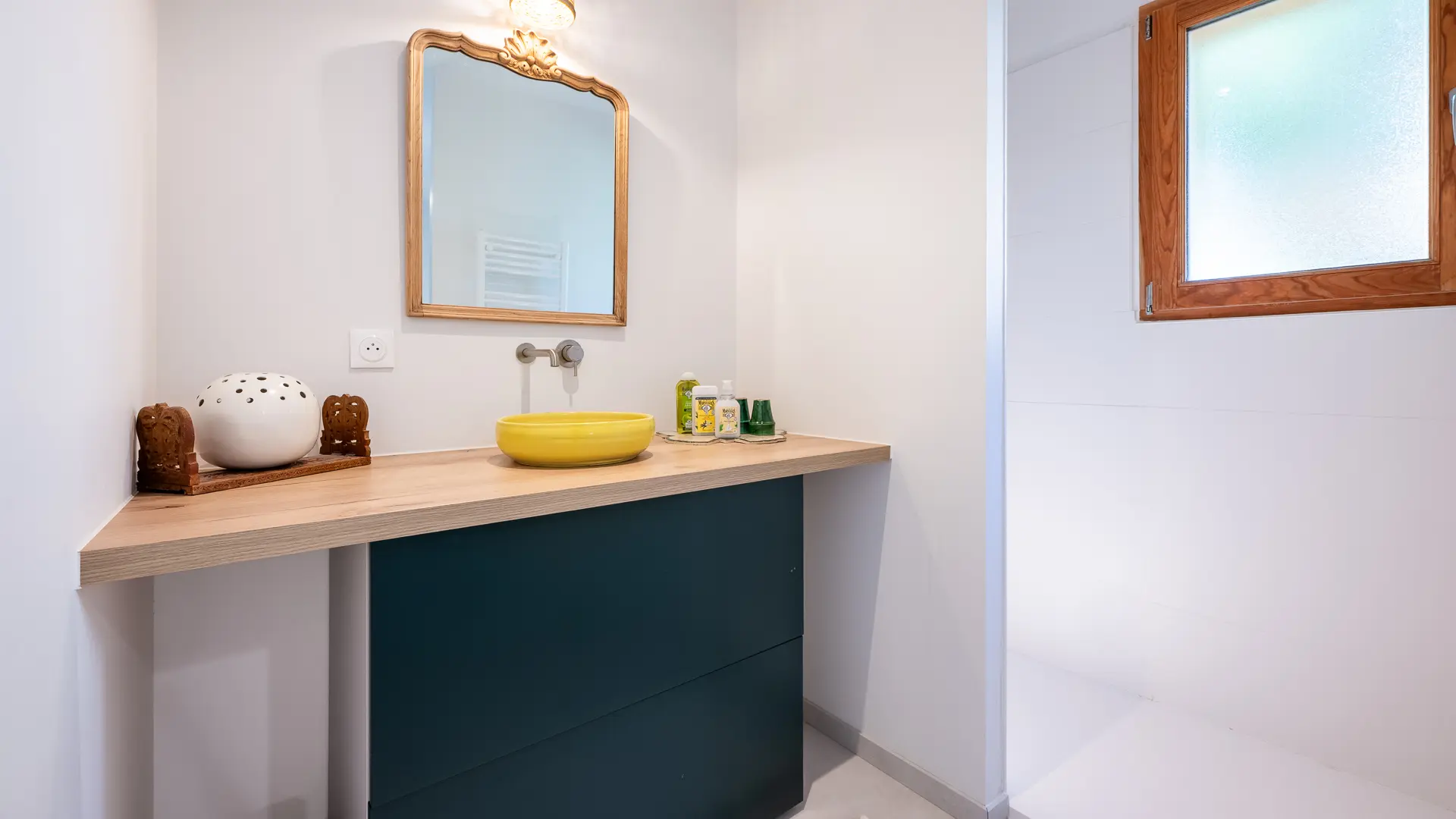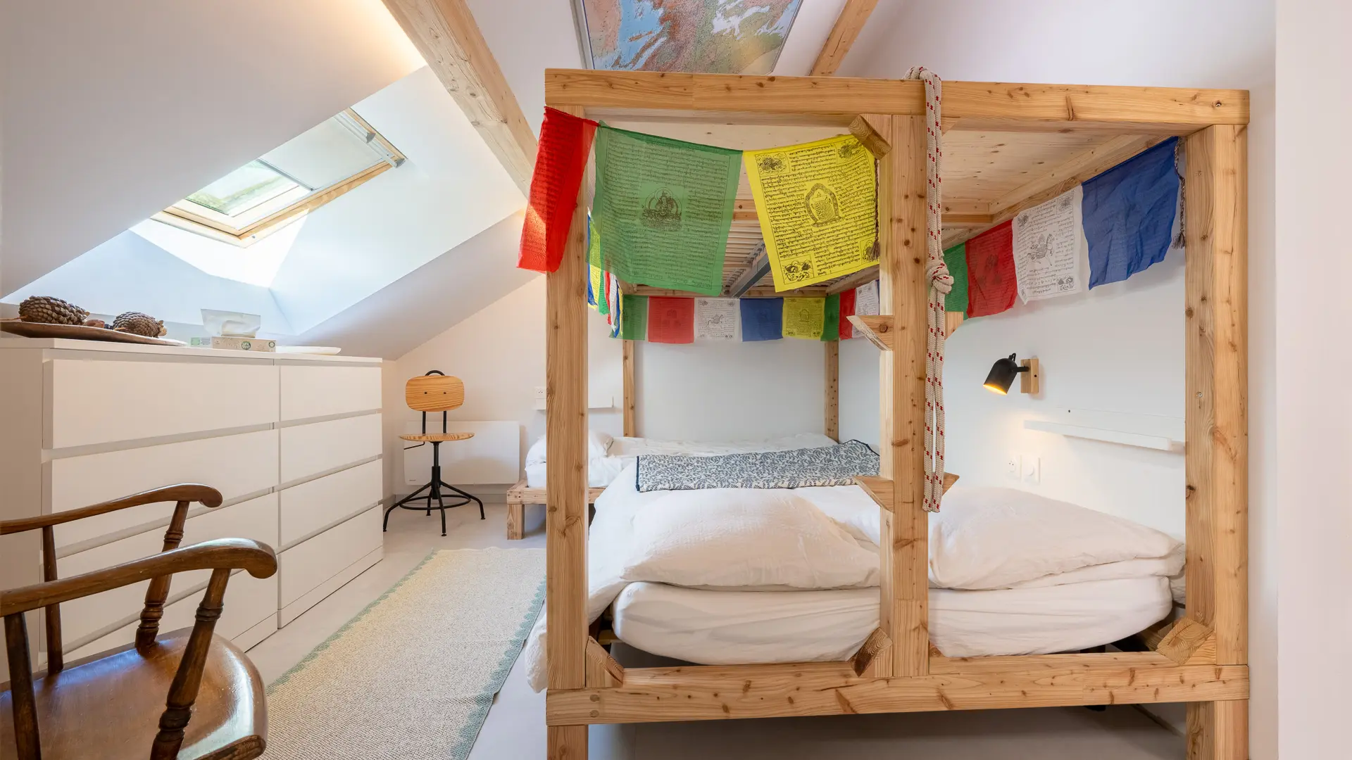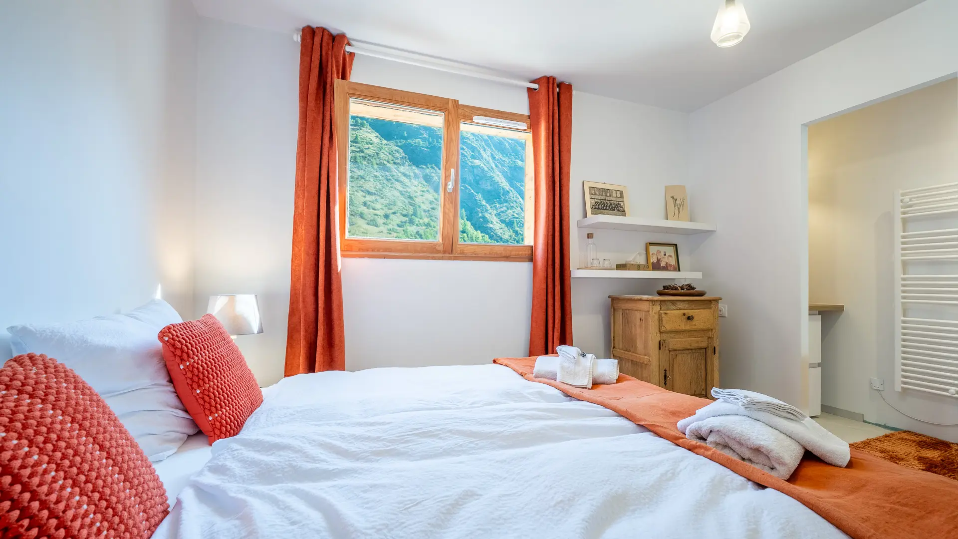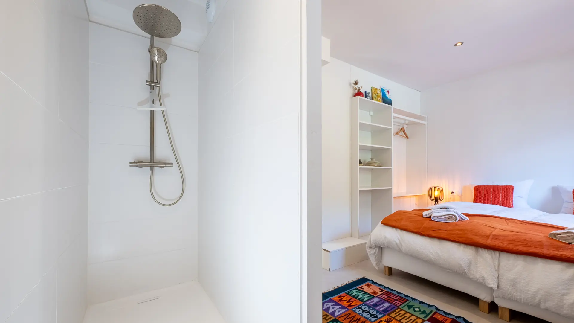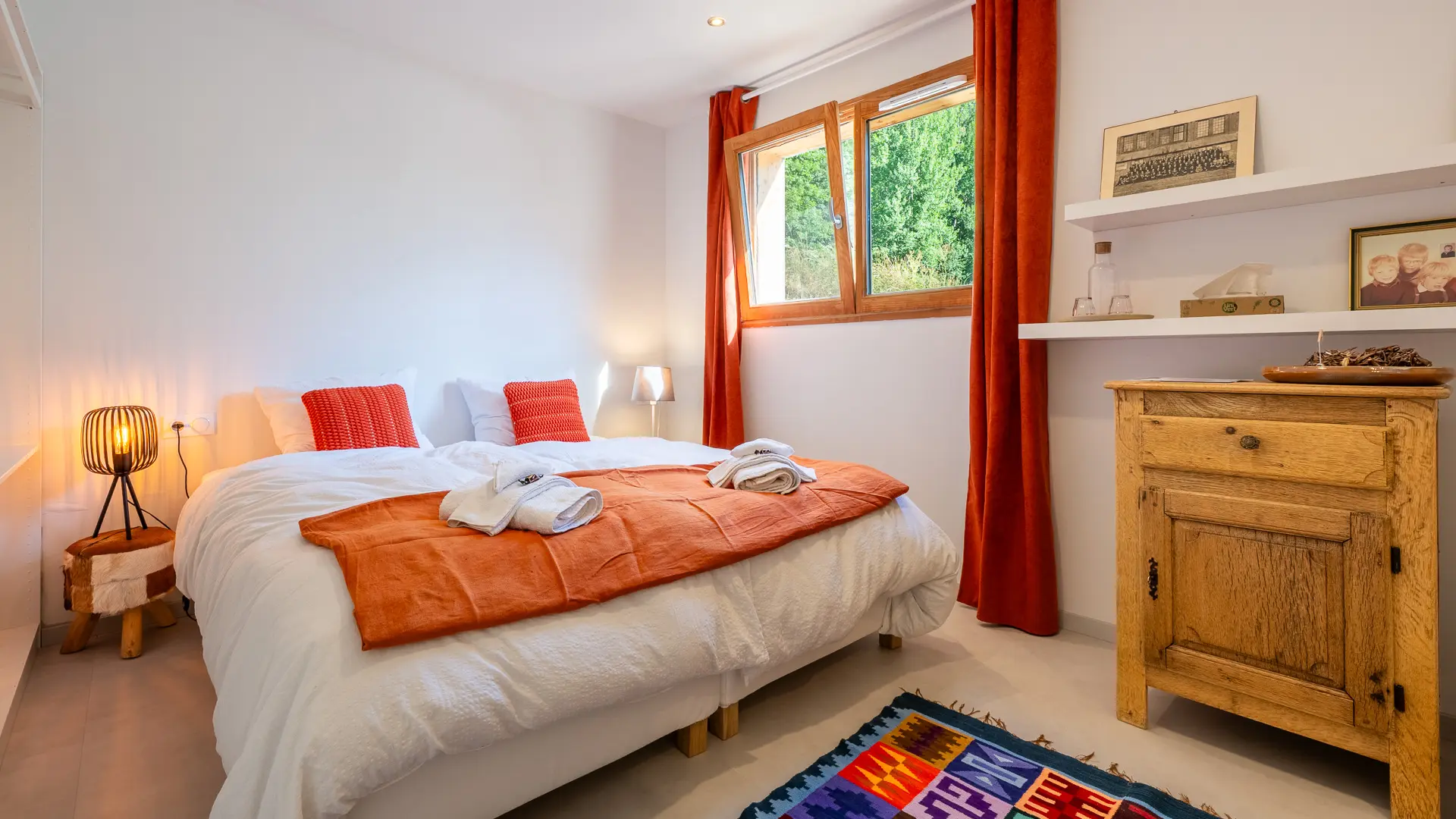 Une chambre avec lit double en 180 et salle de bain privative - Le grand lit peut être séparé en 2 lits