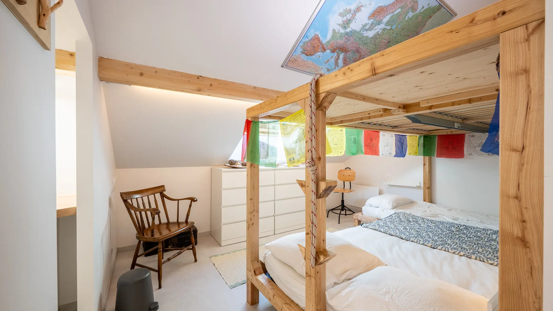 Une chambre avec un lit en 140 + 2 en 90 et salle de bain privative