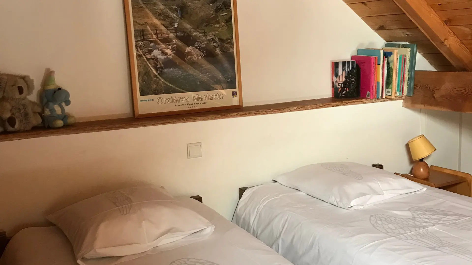 Trois chambres dont une en mezzanine (2 lits 2 pers et 4 lits 1 pers).