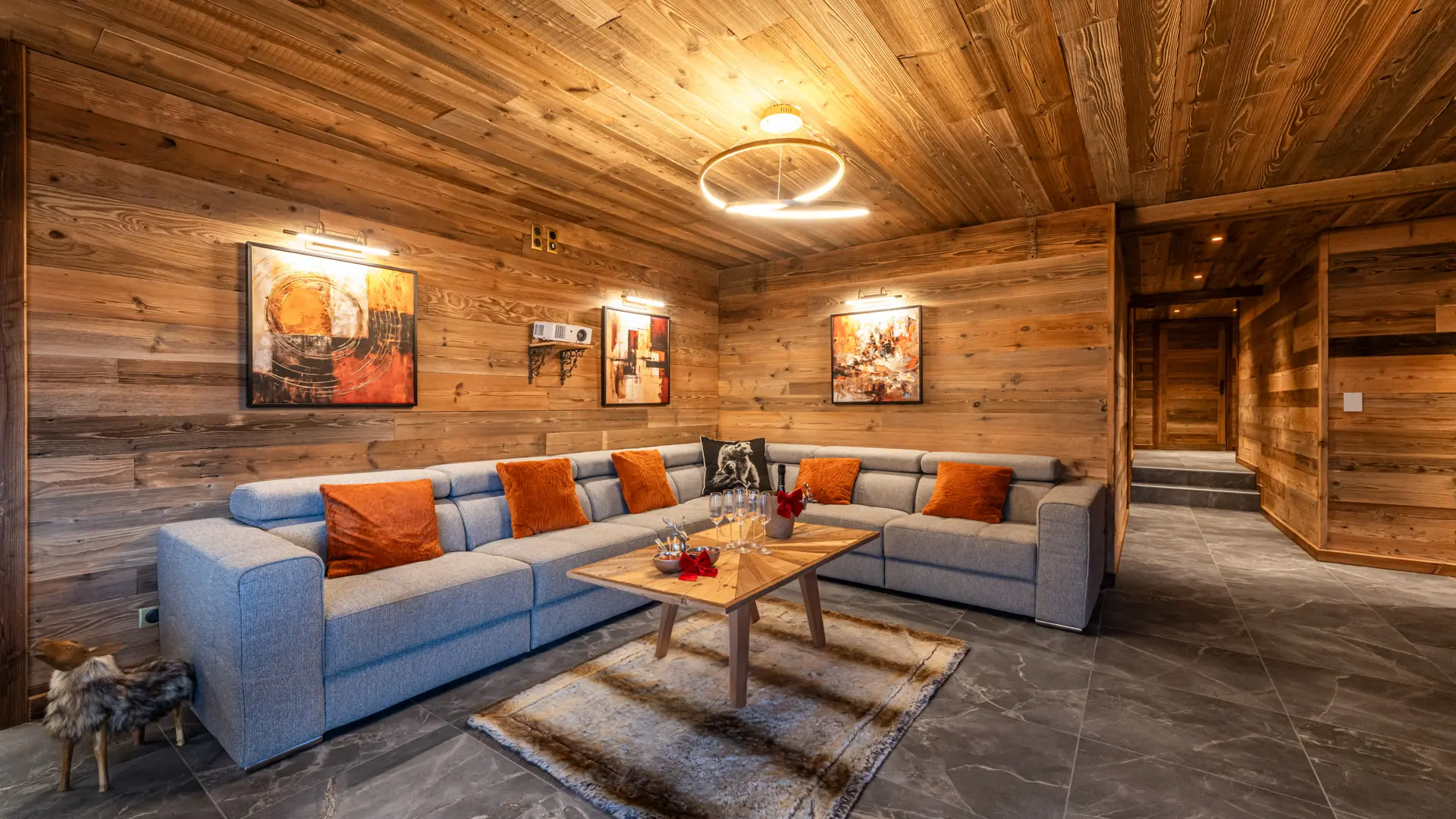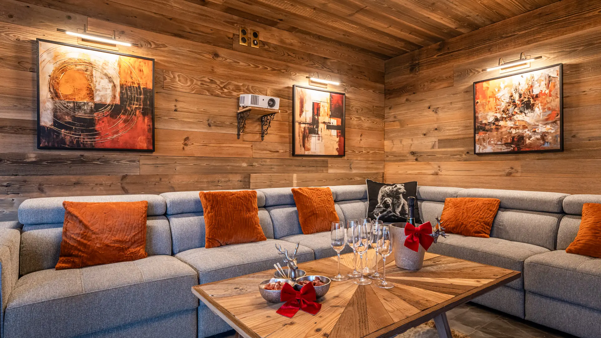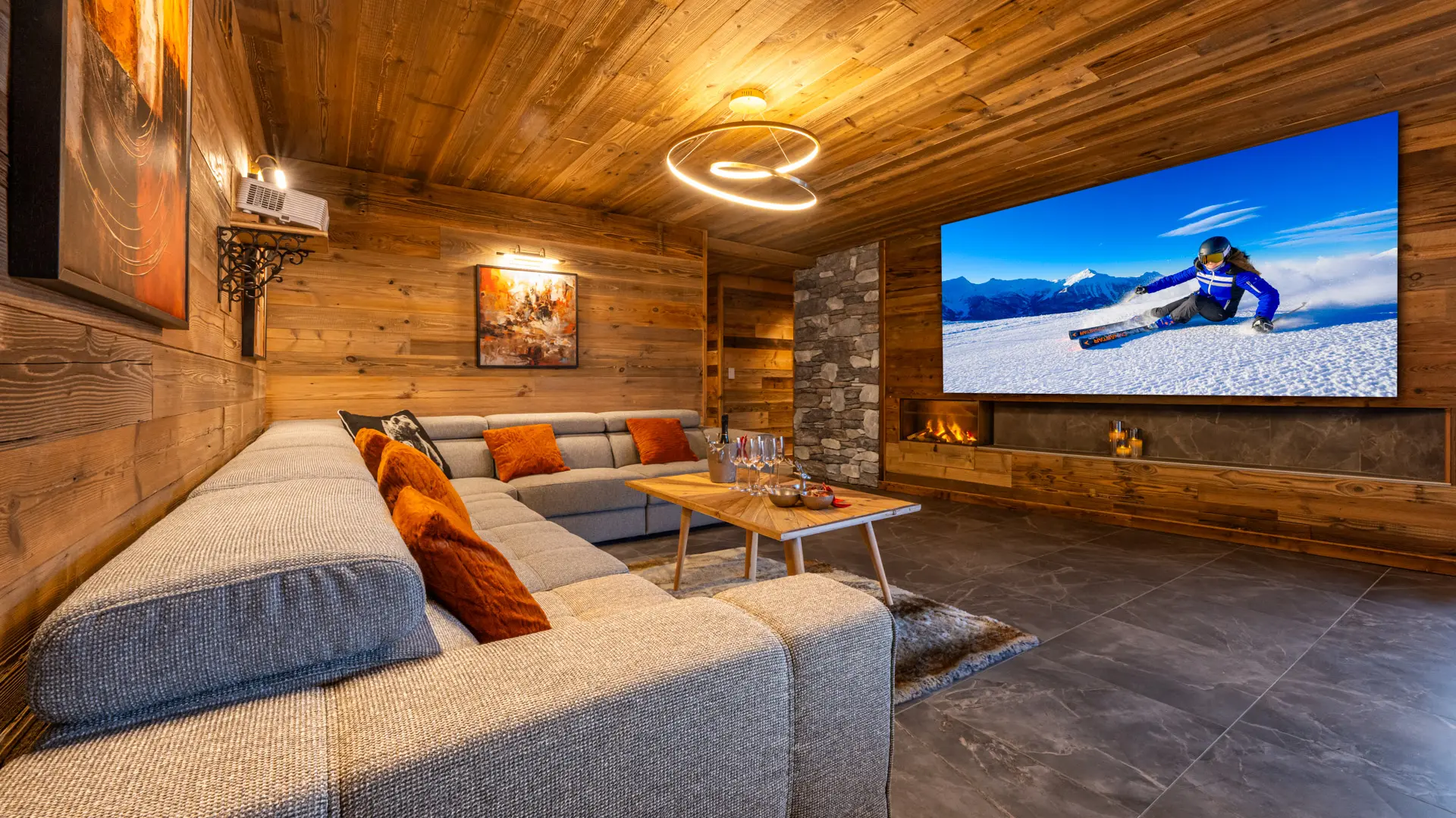 Séjour chaleureux avec cheminée, vidéo projecteur