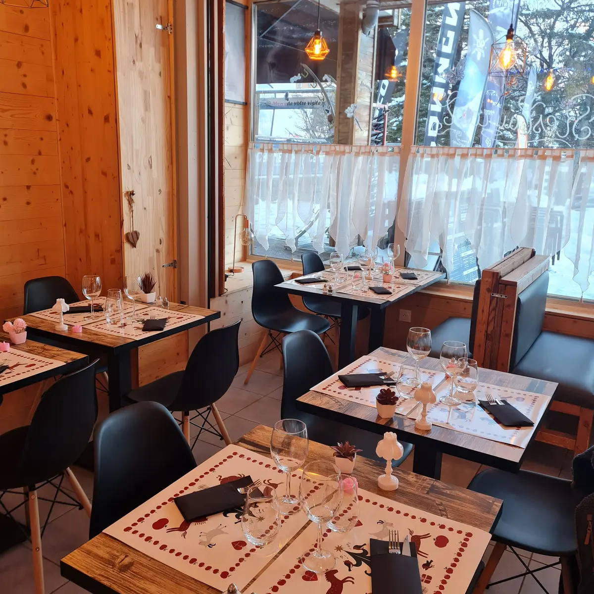 Nous proposons des raclettes, fondues savoyardes aux cèpes, morilles, des burgers, steaks frites, Fish and chips, ainsi que des pizzas. les après midis. Nous proposons un large choix de boissons chaudes, crêpes et gaufres.
