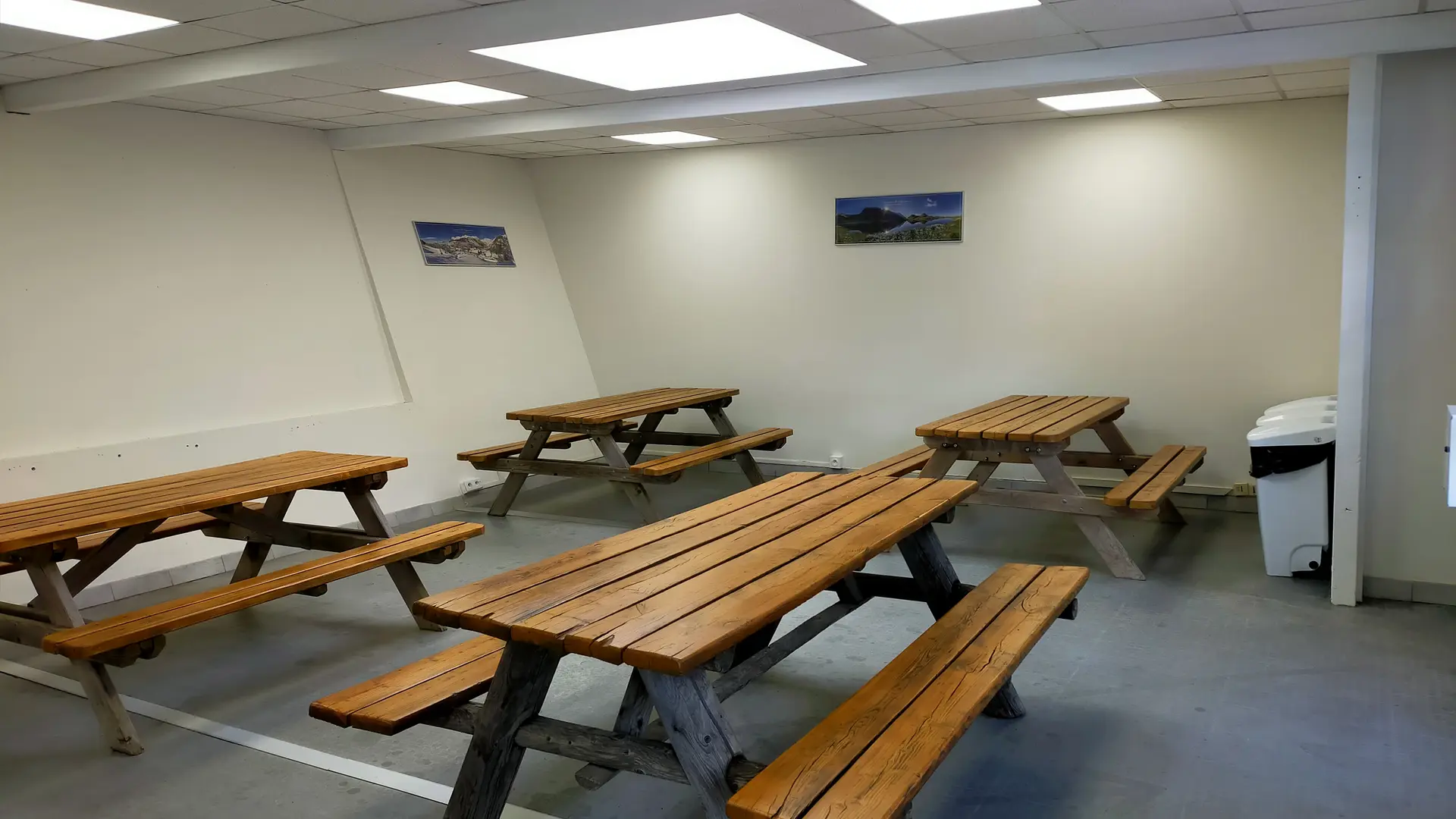 Elle est chauffée et équipée de tables, de toilettes et d'un espace change bébé.