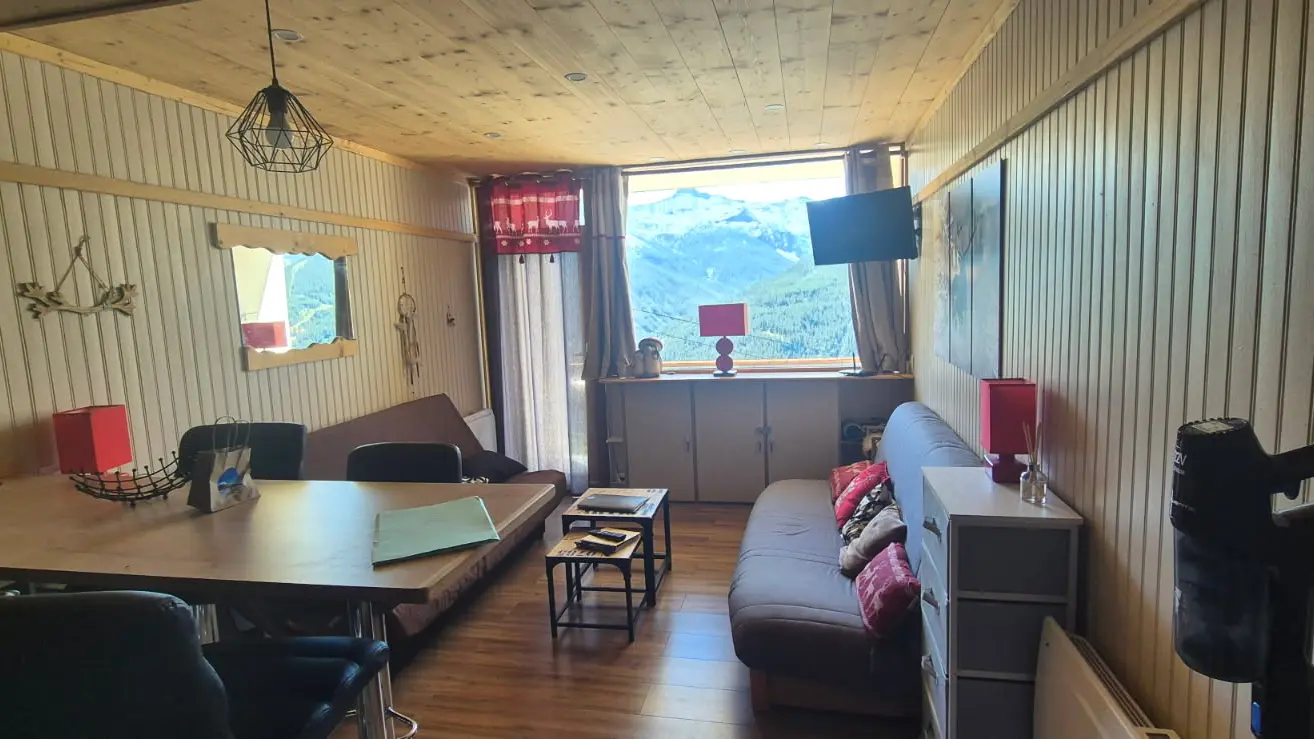 Studio récemment rénové dans la copropriété Les Plautus II, 26 m2 entièrement refait à neuf avec un balcon vue sur les montagnes orienté plein sud.